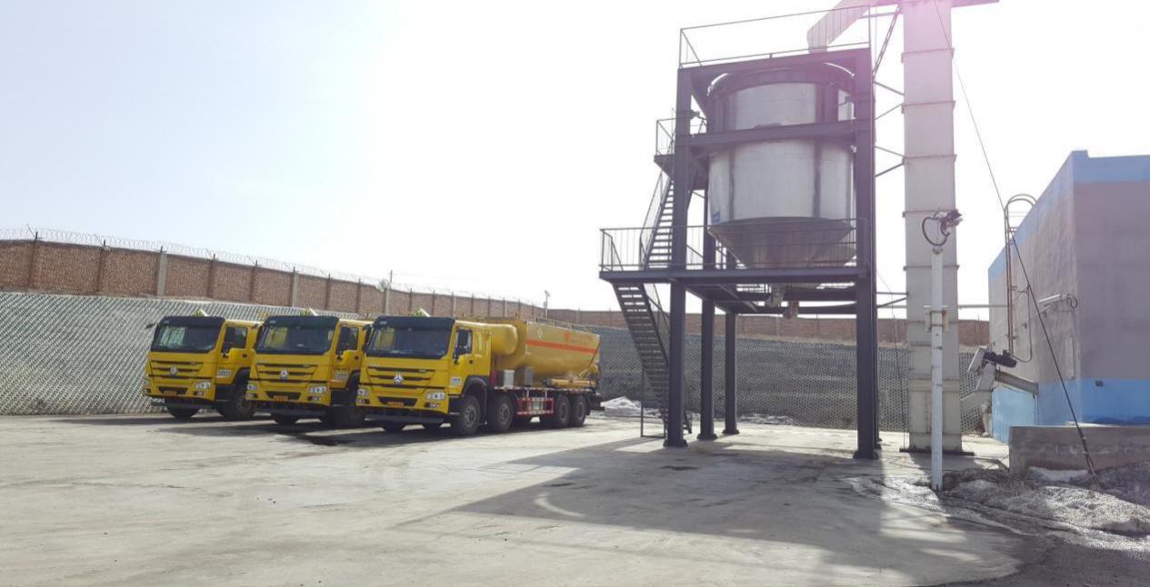 铵油地面站包括吨袋多孔粒状硝酸铵割袋装置、多孔粒状硝酸铵储罐、斗式提升装置、钢平台及管道系统、柴油罐和柴油泵送系统以及自动计量与控制系统,可为现场混装铵油炸药车、多品种炸药混装车提供快速上料服务。