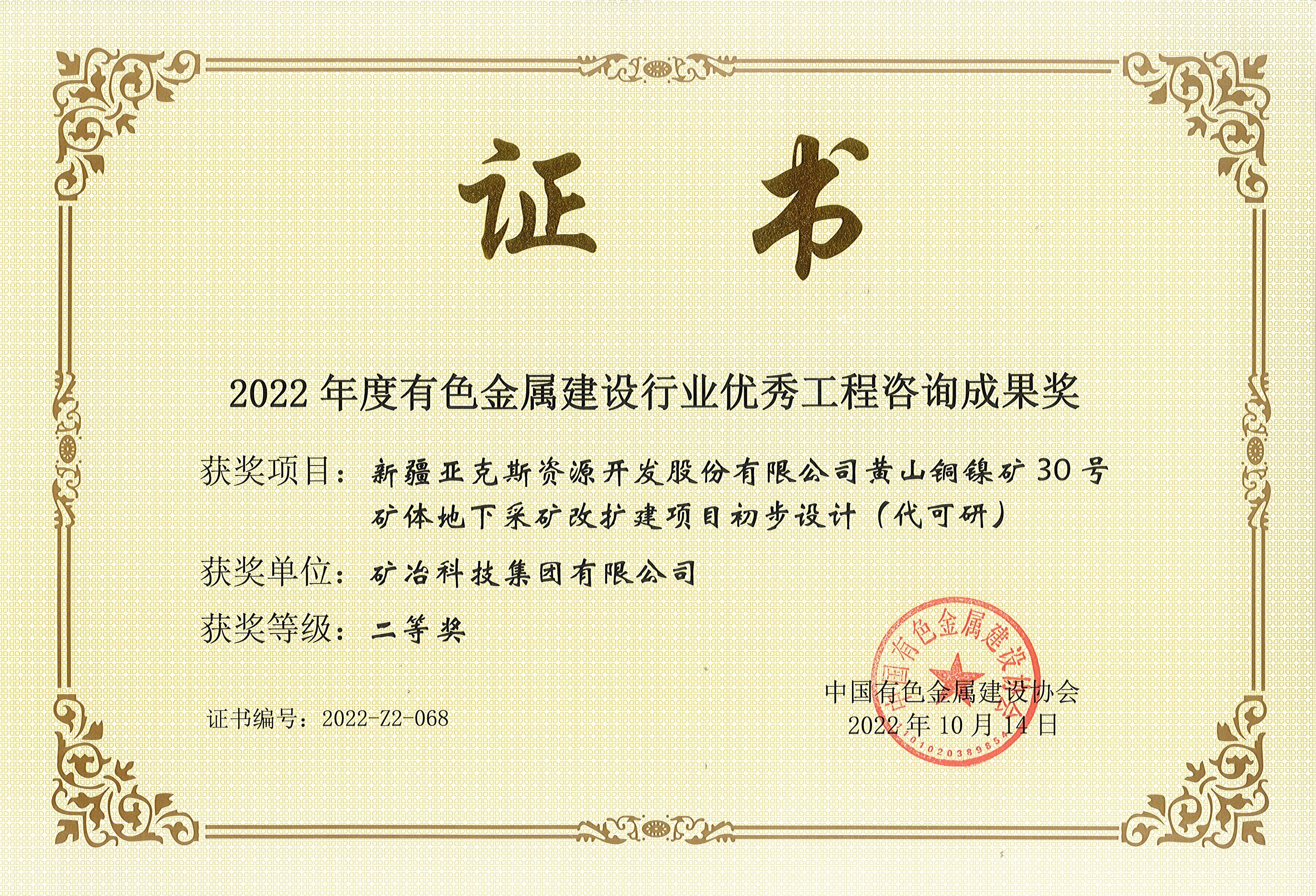 新疆亚克斯资源开发股份有限公司黄山铜镍矿30号矿体地下采矿改扩建项目初步设计(代可研)