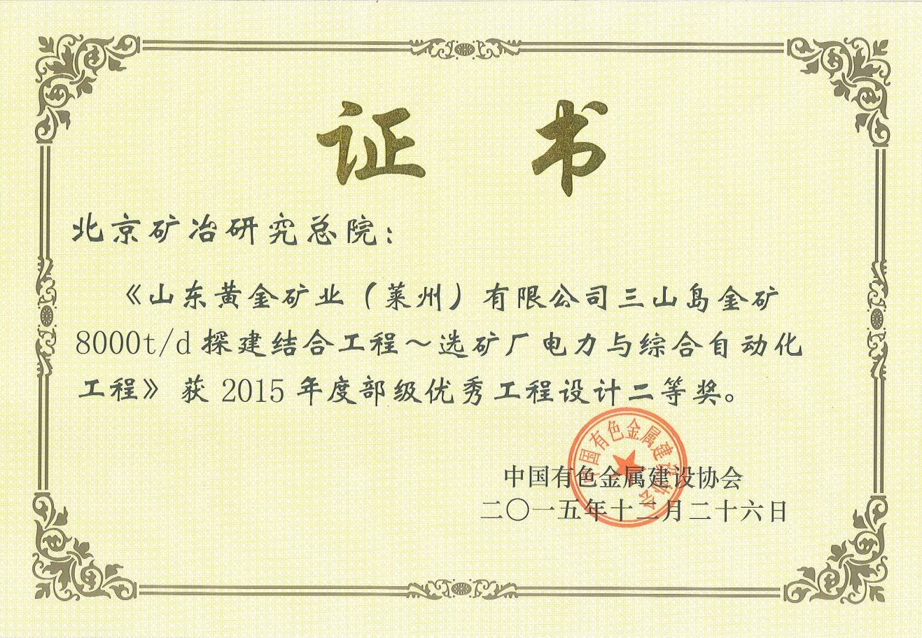 山东黄金矿业(莱州)有限公司三山岛金矿8000t d探建结合工程--选...