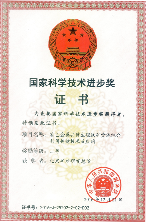 3 2016 国家级 国家科技进步奖 2 国务院 有色金属共伴生硫铁矿资源综合利用关键技术及应用