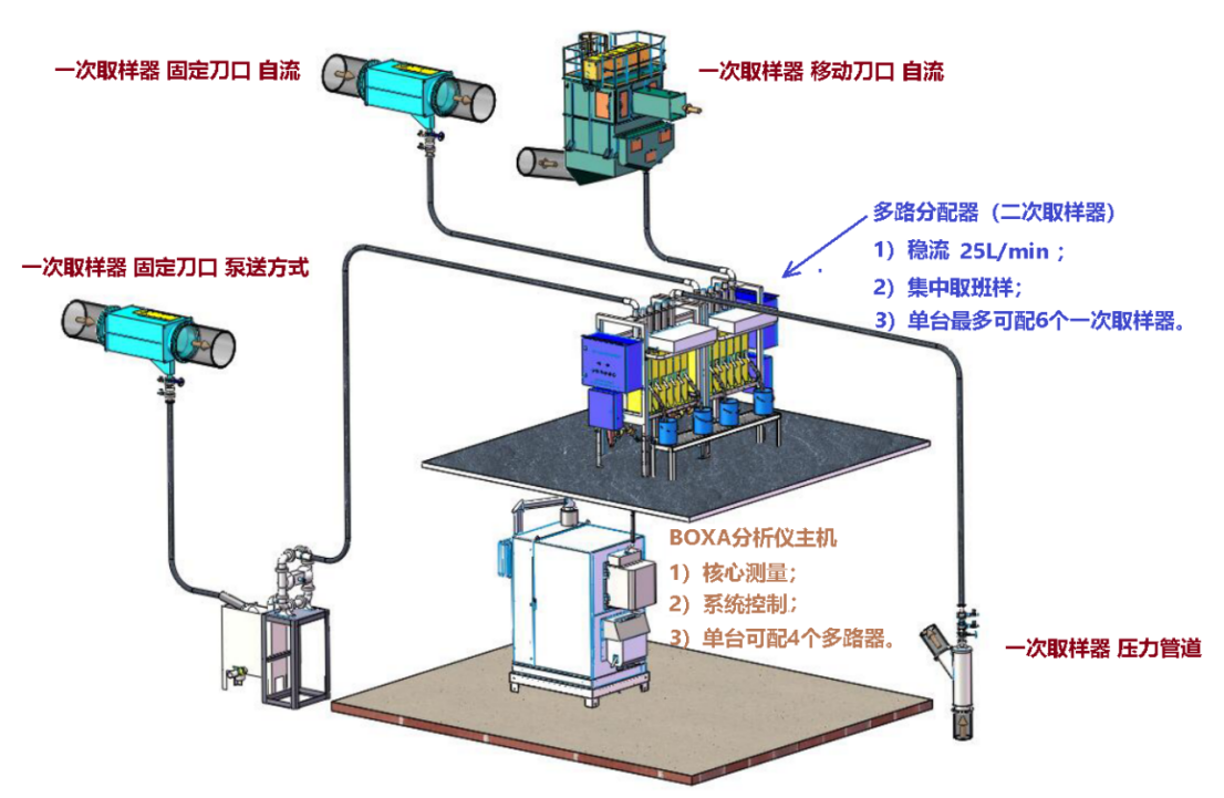 选矿流程关键工艺参数在线分析系统包括在线品位分析系统和在线粒度分析系统。BOXA在线品位分析系统为选矿厂进行选矿工艺控制和调整提供快速、准确的分析结果,该分析仪采用波长色散+能量色散技术可对多达24个样品流同时测量铜、铁、钼、铅、锌等元素含量和浓度,并可间接测量硫的含量。BPSM型载流在线粒度分析仪是一款高性能的测量矿浆粒度的实时分析系统,可为选矿厂进行磨矿监视、调整和控制提供快速、准确的粒度分析结果,该在线粒度分析仪可对多达4个测量流道同时提供粒度和浓度2个参数。